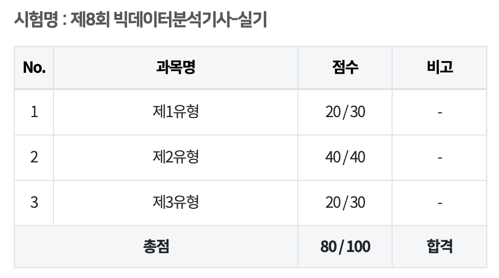 | [자격증] (✨요약정리 공유) 빅데이터분석기사 8회 필기 합격 후기 | 비전공자 공부방법, 준비기간 (14) | 2024.06.29 |