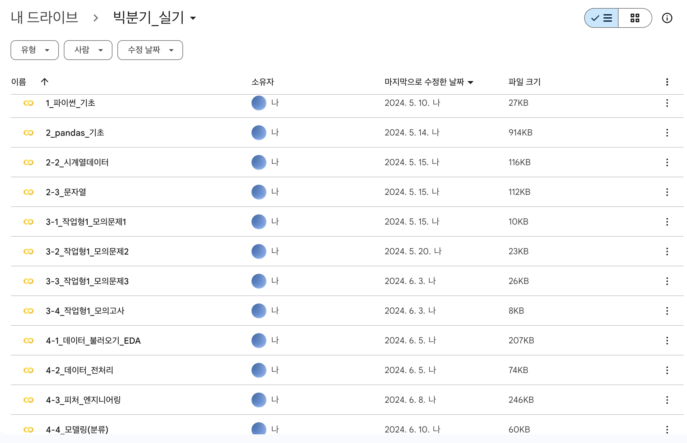 참고로 필기시험 후기에서도 말했듯 나는 비전공자이지만, 국비지원으로 데이터 분석 전문가 6개월 과정을 수강 중에 있어서 파이썬 관련 지식은 가지고 있는 상태다. 그리고 필기시험 이후 진행했던 프로젝트나 공모전을 통해 전처리부터 머신러닝 모델링까지도 경험해 보며 아예 아무것도 모르는 상태로 응시하진 않았다.
