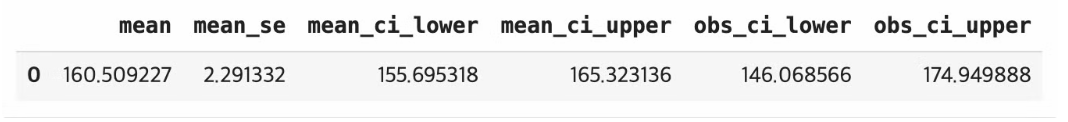 - model.get_prediction() #예측값과 예측값에 대한 신뢰구간, 예측구간